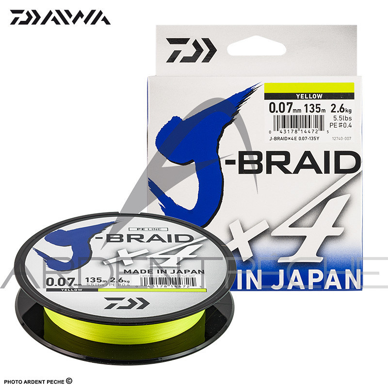 Add to my wishlist "Tresse DAIWA J Braid X4 jaune 135m" Select a wishlist to add this product There are not wishlist.