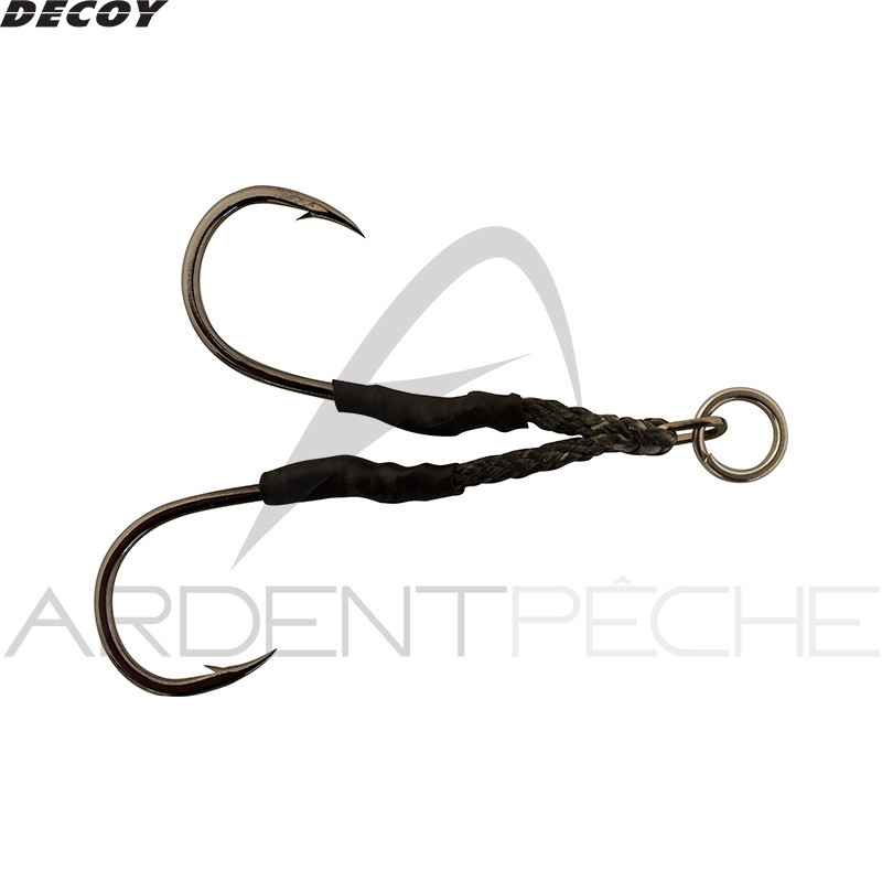 Le DJ 90 est un assist hook double de faible longueur que l'on utilisera principalement pour armer des jigs de petite taille. Le choix des hameçons s'est tourné vers des modèles ultra piquants doté d'un très bon pouvoir de pénétration permettant de piquer des poissons lors de la phase de descente du jig même sur dans le cadre de l'utilisation de petits leurres de faible poids.