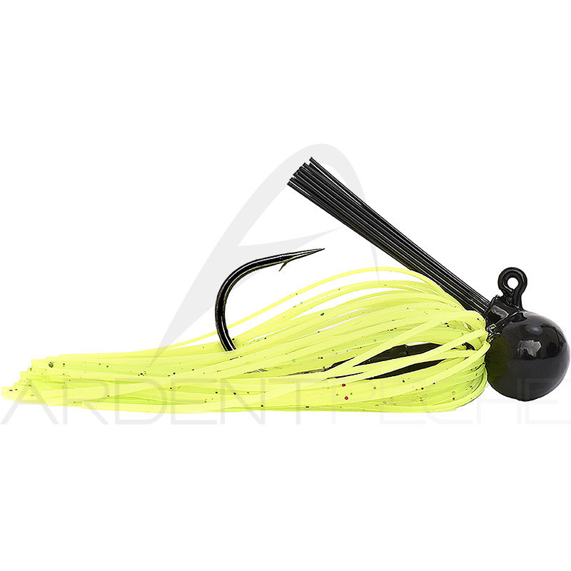 L'Ulti Rubber Jig associe une tête plombée de type « football » équipé dun hameçon Decoy ultra piquant et une jupe en silicone bien fournie et très mobile dont le volume douverture attirera de loin lattention des carnassiers. La forme de sa tête permet une prospection lente à proximité du fond en accentuant laction rolling du leurre et il est équipé dun ergot qui assure un parfait maintien du trailer qui peut lui être associé. Son système anti-herbe est particulièrement efficace. Aussi efficace sur la perche, le black-bass et le brochet en milieux encombrés, au plus près des obstacles.