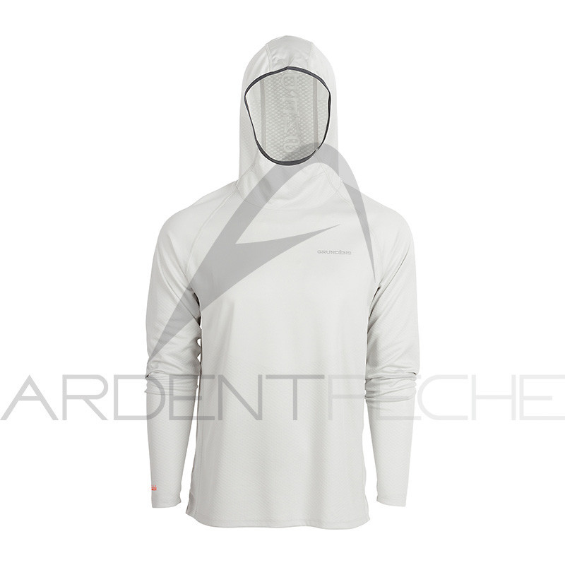 Le tee-shirt manches longues anti-UV UPF 50+ Solstrale Pro Hoody coloris Glacier de Grundéns incarne l’alliance parfaite entre performance technique et confort pour la pêche sportive.
