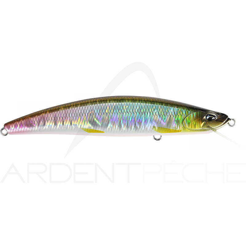 LOnimasu Masakage 110F est un minnow flottant initialement développé au Japon pour la pêche de la truite en grande rivière. Il sera également très intéressant pour la recherche des prédateurs de nos milieux, en eau douce comme en mer. Sa conception générale et sa bavette en fibre lui permettent de rester parfaitement stable dans les courants les plus puissants et daccepter des vitesses de récupération très rapides. Son action rolling associée à un wobbling particulièrement dynamique feront craquer à coup sûr bon nombre de carnassiers.